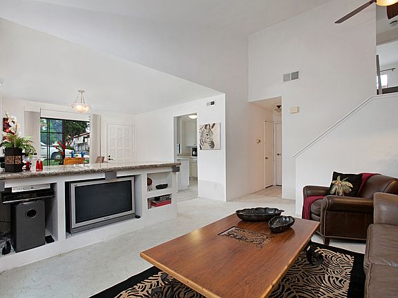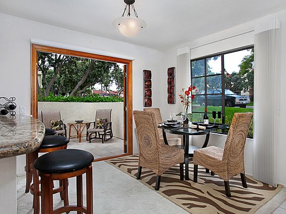 Beautiful end unit with entry from the street. Largest unit in the complex. House has beautiful French doors that leads to a patio area. The unit is located in the best location in a cul de sac. The unit has an extra 1/2 bath and two full bathrooms. Light and bright. Park like setting. Pool and spa in complex. Garage. Air conditioning. Hardwood and tile flooring. Appliances included. Call to view.