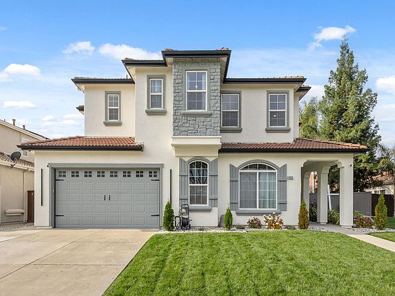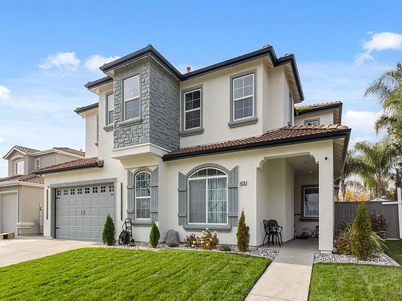 Welcome to this beautifully updated 3,330 sq. ft. two-story home with distant Sierra Mountain views and a highly functional layout. The main level features a primary suite plus an additional bedroom, while upstairs offers two more bedrooms, a spacious bonus room, and an open loft ideal for a home office or media space.Recent updates include fresh interior and exterior paint, refinished cabinets, new lighting, ceiling fans, window coverings, door hardware, and refreshed stairs and garage. The fully remodeled front and backyard landscaping showcases new sod, decorative rock, and a color-matched storage shed.Enjoy outdoor living with a sparkling pool featuring a shallow lounging area, along with a three-car tandem garage offering flexible storage and parking options. This home shows exceptionally well and is available for private showings on short notice.