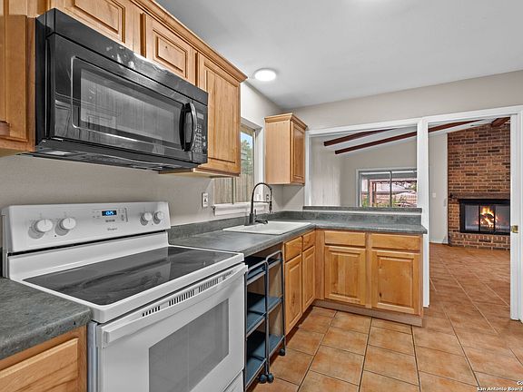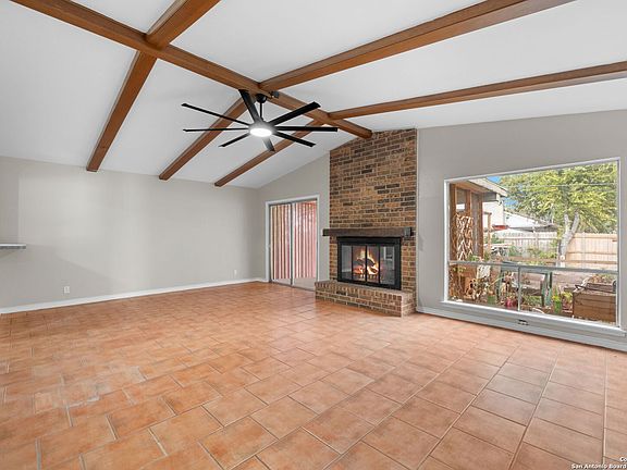This single-story home in the Shenandoah neighborhood offers an open and functional layout. The spacious living room features vaulted ceilings and a cozy fireplace, flowing seamlessly into the formal dining area and kitchen, creating an inviting space for both everyday living and entertaining. The primary bedroom includes outdoor access, while a programmable thermostat provides modern comfort and the two-car garage adds convenience. The generous, spacious backyard offers plenty of room for outdoor gatherings, gardening, or relaxing. Enjoy access to community amenities including a pool, playground, community center, and tennis courts. Located within the North East Independent School District and near the Medical Center, USAA, North Star Mall, and major highways, this home combines comfort, accessibility, and value in one of San Antonio's most central locations.