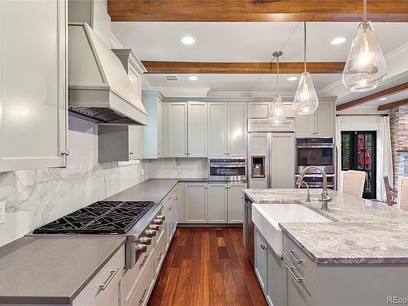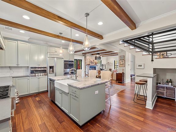 Nestled in the highly desirable Sunnyside neighborhood, this exquisite 4-bedroom, 3-bathroom home masterfully blends timeless charm with contemporary sophistication. Fully renovated, this home integrates its original features with modern luxury for an unparalleled living experience. Upon entry, you're greeted by hardwood floors that flow seamlessly through the open-concept living and dining areas. The living room exudes elegance, with exposed brick walls, striking wood beams, and a beautiful gas fireplace as the focal point. The magazine-worthy kitchen features custom cabinetry, luxurious Quartzite countertops, and high-end GE appliances, including a double oven. A spacious pantry adds both function and style to the space. Upstairs, the home offers three beautifully appointed bedrooms, with the expansive primary suite serving as a true sanctuary. Vaulted ceilings, exposed brick, and a walk-in closet complete the space. The en-suite bath is designed for relaxation, offering a large soaking tub, a tiled walk-in shower, and dual vanities. The secondary bath is equally stunning, with finishes that match the primary suite’s high-end style. The newly renovated lower level offers flexible living spaces, adaptable as a home office, non-conforming bedroom, or entertainment area. One of the basement’s highlights is the hidden door that leads to your very own private speakeasy. The backyard is an entertainer’s paradise, featuring a grilling station, dining area, and multiple seating zones. Exterior lighting on both floors and backlit trees create a magical ambiance at night. The gas grill and outdoor wine fridge enhance the al fresco experience, while the full irrigation system ensures the lush landscaping remains low-maintenance. With all-new windows, electrical, and plumbing, this home combines modern efficiency with timeless character. A rare find that blends sophistication and thoughtful design—don’t miss your chance to own this exceptional home.