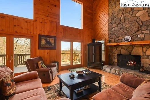 ONLY 10 MINUTES TO DOWNTOWN BLOWING ROCK. Great Investment property! NEW HVAC, NEW DISHWASHER.Masters suite on main level with an additional 1/2 bath for guests. Great room with soaring vaulted ceilings. The stone wood burning fireplace is the showpiece of the main level. Lots of windows that lead to wraparound deck with great mountain views. as you round the corner of the the deck you will find a covered area with large hot tub and sitting area. This home comes totally furnished and turn key with great rental history. The upstairs has 2 bedrooms each with their own baths.You also have a loft area with a pool table and fantastic mountain views. You also have a covered front porch. This home is immaculate and ready for you and your guests. Rental History available. Home is booked for rentals a lot so showing may be limited. March and April are good times to show. it is still in the rental program with Blue Ridge Mountain Rentals. The name is Stress Relief and it will definitely relieve all your stress.