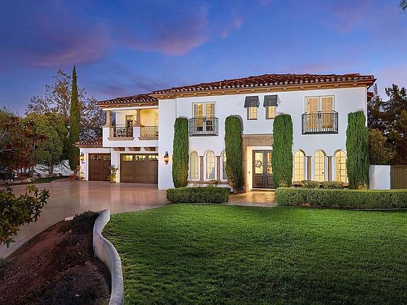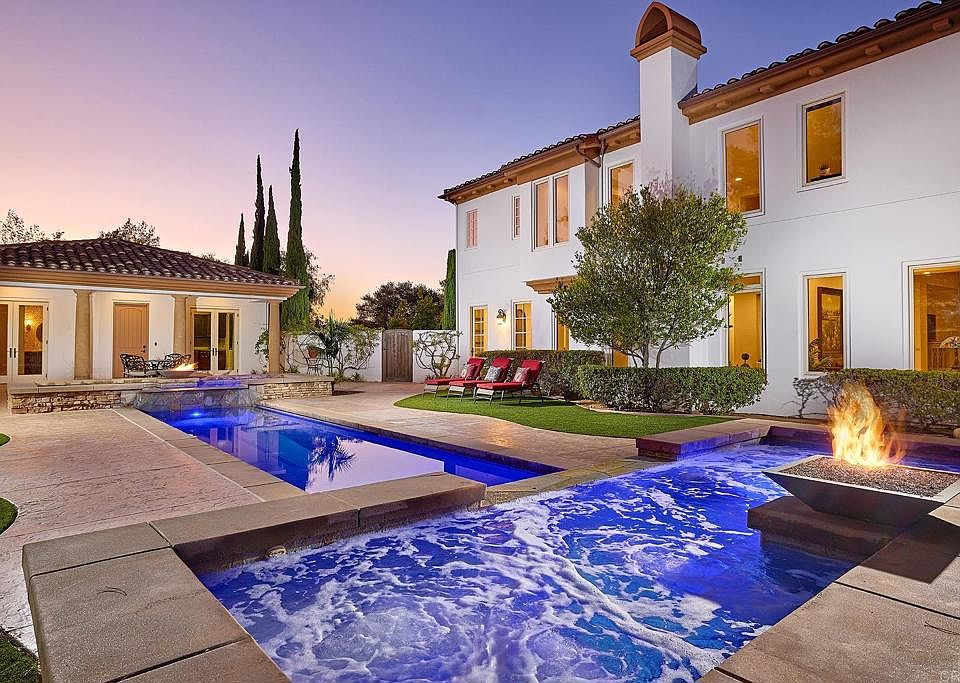 Behind the gates of Malabar Ranch, this Spanish Mediterranean–style estate offers a serene Southern California retreat designed for elevated living and effortless entertaining. Set on 2.11 acres, the residence commands attention with timeless Santa Barbara style stucco, arched windows, manicured landscaping, and a grand sense of arrival. Inside, a dramatic two-story living room sets the tone with soaring ceilings and a graceful staircase, creating an atmosphere equally suited for large gatherings or quiet reflection. The main residence features 5 bedrooms and 5.5 baths, thoughtfully appointed to blend comfort with sophistication. At the heart of the home, the chef’s kitchen is both beautiful and functional, appointed with a Sub-Zero refrigerator, dual ovens, dual dishwashers, and a generous island. From the kitchen sink, enjoy tranquil views of the rolling Fallbrook hills: a daily reminder of the property’s exceptional setting. The kitchen transitions naturally to the dining room, breakfast nook, and outdoor entertaining spaces, encouraging seamless indoor-outdoor living. Outdoors, the estate unfolds into a series of inviting terraces, each oriented to capture the sun’s journey over the hills. Enjoy morning coffee as the sun rises and gather at day’s end to watch the sky glow at sunset. The resort-style pool and spa, cedar-wrapped sauna, and built-in barbecue island complete the experience, creating a private sanctuary that feels worlds away. The detached one-bedroom guest house adds flexibility for extended stays, offering comfort and privacy for visiting family or friends. Balancing scale, privacy, and refined architectural detail, this estate embodies the best of Southern California living - a place where luxury feels relaxed, nature is ever-present, and home becomes a destination.