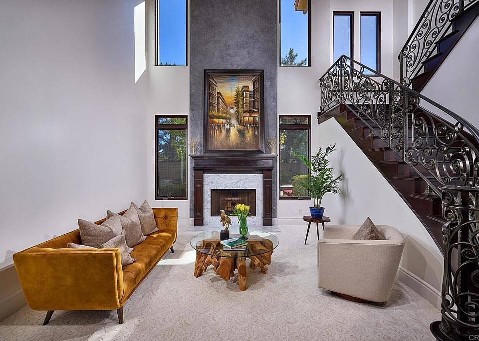 Showcasing a large estate home with resort-style pool and spa, detached guest house, 4-car garage, privacy, and refined architectural details, this residence is designed for both luxury living and entertaining. Set within the exclusive gated enclave of Malabar Ranch, this Spanish Mediterranean–style estate offers the privacy, sophistication, and grandeur that discerning buyers expect. Positioned on 2.11 acres, the property presents commanding curb appeal with timeless Santa Barbara style stucco, arched windows, lush landscaping, and a sense of arrival that makes a lasting impression. Inside, a dramatic two-story formal living room welcomes guests with soaring ceilings and a sweeping grand staircase—an ideal setting for both formal entertaining and quiet reflection. The main home boasts 5 bedrooms and 5.5 bathrooms, designed with both elegance and comfort in mind. At the heart of the home, the chef’s kitchen is outfitted with a Sub-Zero refrigerator, dual ovens, dual dishwashers, and a generous center island, making it both functional and inviting. From the kitchen sink, take in serene views of the rolling Fallbrook hills—a daily reminder of the home’s exceptional setting. A spacious, well-appointed kitchen flows effortlessly between the formal dining room, breakfast nook, and the entertainment area with built-in barbecue island. The detached one-bedroom guest house offers luxurious accommodations. Outside, multiple living and dining areas are thoughtfully oriented to take in the surrounding Fallbrook hills. Enjoy morning sunrises with coffee on one terrace and toast evening sunsets from another. A private resort style in-ground pool and spa, and the cedar wrapped sauna complete the picture, providing the perfect retreat after a demanding day. This residence is more than a home—it’s a statement piece, offering the ideal balance between prestige and personal sanctuary.