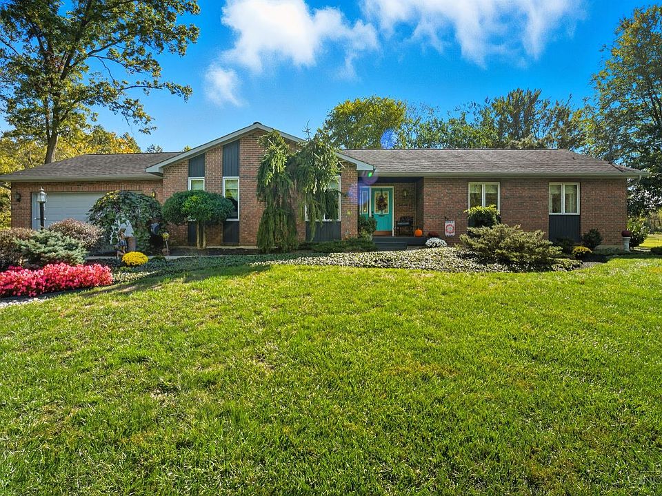 This custom-built ranch on nearly five acres has it all! This home features beautiful hardwood floors throughout first floor, granite counters in kitchen with painted pecan cabinets, counter bar and a breakfast nook with picture windows. The open dining room/living room has a cathedral ceiling and built ins, and the family room features a fireplace and walkout. The lower level has a spacious, finished area, two walk in cedar closets and a large unfinished space with a workshop and additional storage. The huge deck off the family room is perfect for outdoor entertaining with a spectacular view of the private, deep backyard. The pole barn has its own separate gravel drive off Ellis Road and has a dedicated office space with electric, heat & air conditioning as well as an expansive storage space.