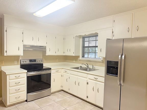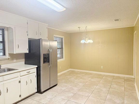 Welcome to this charming 3-bedroom, 2-bath home located in Pace. The spacious living room features tile flooring for easy maintenance, and a cozy, brick-encased, wood-burning fireplace. The kitchen comes equipped with stainless steel appliances, ample cabinetry, plenty of counter space, and dedicated eat-in area. The primary suite includes an en-suite bathroom with a tiled walk-in shower and built-in shelving for added storage. Two additional bedrooms share the second full bath with single vanity and tub/shower combo. Additionally, enjoy the large bonus sunroom at the rear of the home, and step outside to a fully-fenced backyard, offering both space and privacy.