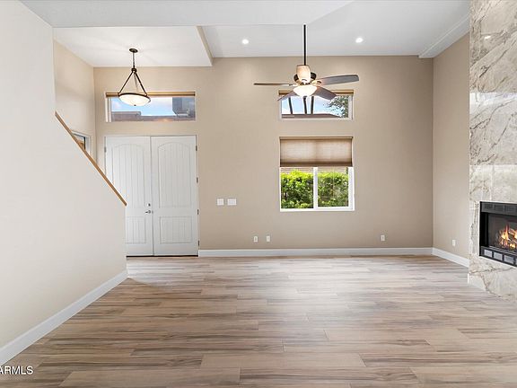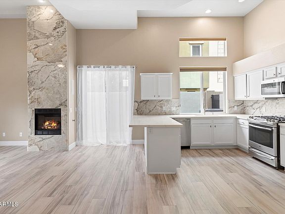 Welcome to this end unit at 4216 N 27th St #108. Recently remodeled, the main living area features soaring 18' ceilings, a cozy fireplace, & abundant natural light. Designed for convenience & style, the updated kitchen features a large walk-in pantry, sleek new quartz countertops, & new flooring throughout. Each bedroom boasts 10' ceilings, including one w/ a beautifully designed built-in office—perfect for remote work or a private study. The spacious side yard is perfect for entertaining, complete w/ turf, pavers, & an outdoor TV. The 2-car garage offers epoxy flooring & built-in storage cabinets. Ideally located near dining, shopping, major freeways, & the airport.
