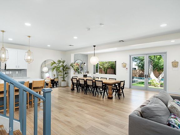 Make this Arcadia Lite home in this coveted pocket neighborhood your next dream home! 5 bedroom, 4 bath in a great functional floorplan (one bed/bath on 1st floor) - it boasts high ceilings & luxurious finishes throughout. Open living layout with lots of natural light and charm, the living room was recently extended to feature accordion bar window, extra square footage and beautiful doors and windows overlooking a lush backyard. Opens to the dining room, living room & stunning backyard with mature landscaping and heated play pool. Lofted space on 2nd level is perfect for office or play. Primary suite includes vaulted ceilings w/ ensuite bath & huge walk-in shower. Available turn-key and move-in ready with furnishings.