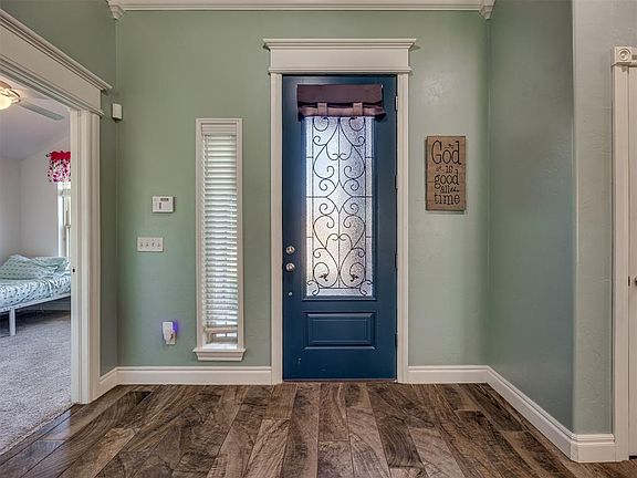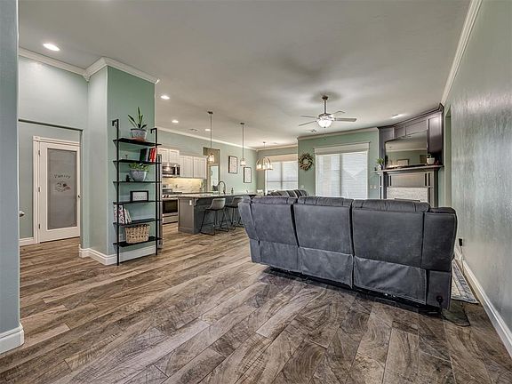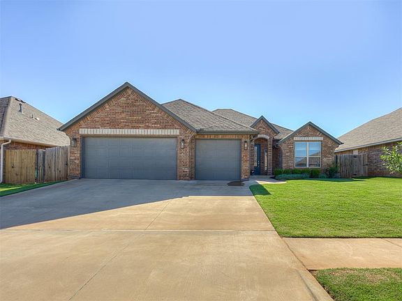 Check out this well crafted 4-bed 2-bath in west OKC that is ready to welcome you! This home features open-concept living with wood-look ceramic tile floors, granite countertops, and a spacious kitchen featuring stainless steel appliances and a large center island. The main suite offers a jetted tub, walk-in shower, and dual vanities for your comfort. Step outside to a covered east-facing patio perfect for relaxing in the shade. This home also includes a spacious 3-car garage with an underground storm shelter. Nestled in a vibrant community with a playground, pond, and sports fields, and located in the Mustang School District. Come see this stunning home for yourself—schedule your showing today!