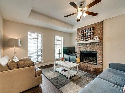 Stunning updates adorn this 1-story DUPLEX zoned for award-winning Flower Mound schools!* Find stylish wood-look c-tile flrs, satin nickel fixtures, premium granite counter tops & vanities + stainless applcs*Brick fplc in liv area w access to courtyard patio*Private backyard patio & mature shade trees off master suite w double granite vanity & substantial walk-in closet. Available July 1st, 2020. Tenant responsible for gas, electric, trash and sewer
