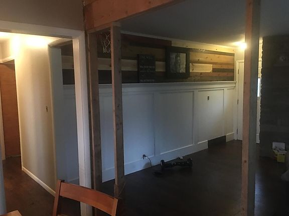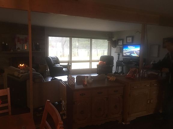 Four bedroom or 3 with a nursery; available end of January or so. Current tenants purchasing a house, rental subject to them moving. Freshly remodeled interior with large living room, and cozy fire place with heatalator. Lots of room, open floorspace. Three acres on the Red Cedar River with woodsm, good fishing, mushroom hunting, hunting and bird watching ect. Good Country living close to town. Small barn on property large enough for a car plus.
