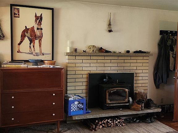 Wood-burning insert fireplaceLarge dining roomDead-end street