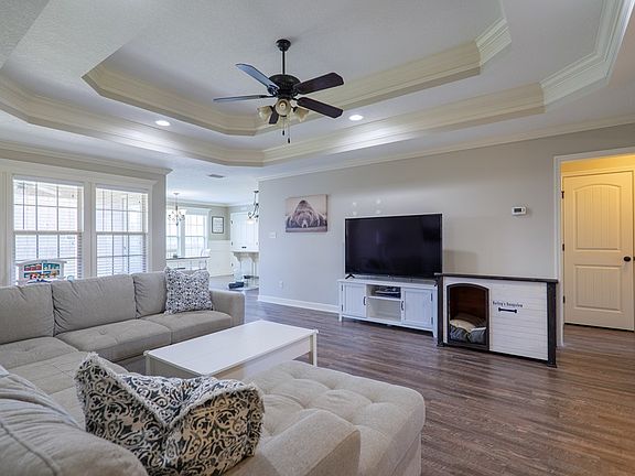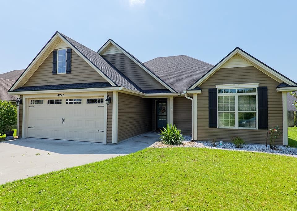 Welcome to this stunning 3-bedroom, 2-bathroom home located in Hahira, Georgia. This is a perfect low maintenance home for a first time home-buyer. This home offers an abundance of windows, optimal for tons of natural lighting, gutters, walk-in closets in all rooms, and a fenced in backyard. As you enter, you'll be greeted by an open floor-plan and windows lining the back of the home. The living room boasts tall ceilings with LVP flooring throughout living areas and carpet in all bedrooms. The kitchen is a chef's dream, featuring stainless steel appliances, granite countertops, large pantry, an island perfect for barstool seating and an open dining room connected to the kitchen. The primary bedroom offers a private retreat with two walk-in closets, spacious primary bathroom, dual sinks, granite countertops, tiled shower, and separate jacuzzi tub. Additional bedrooms are oversized and spacious offering ideal closet space. Step outside to the covered patio and extended grilling pad where you can enjoy outdoor activities, and a low maintenance yard. The property also includes a two car garage, community playground and pond. Located in Nelson Hill Subdivision, close to grocery stores, dining, interstate, and less than 20 minutes to Moody Air Force Base, this home is perfect for you!