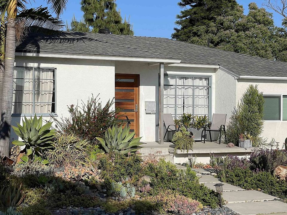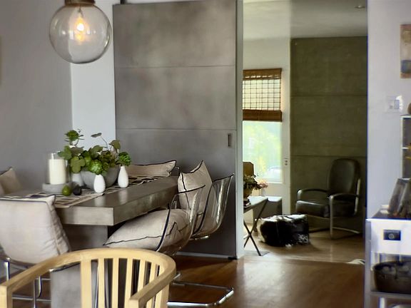Welcome to your serene oasis with sweeping canyon views, where natural light floods every corner, inviting you to savor the essence of the good life. Step into the heart of this home, where the combined living room and dining area provide the ideal space for entertaining guests. A striking industrial barn door beckons you into the artfully crafted den, complete with a creatively designed fireplace, offering a cozy retreat for relaxation and creativity alike. Slide open the glass doors and step onto the covered patio, where you'll be greeted by the lush surroundings and the soothing sounds of nature. Wander across the flagstone pathway to behold the breathtaking vista of the canyon and mountains beyond, a picturesque backdrop for every moment spent outdoors. This thoughtfully designed home features two bedrooms and a bath on the north side, providing a comfortable living arrangement. On the south side, discover a permitted junior ADU studio with its own full bath and separate entrance, offering endless possibilities for multigenerational living or income supplementation through short-term rentals. Stay cool and comfortable year-round with a split A/C unit for the Junior ADU and central air conditioning for the main living area. Plus, rest easy knowing that your energy needs are met with a fully owned solar system, ensuring sustainability and savings for years to come. Don't miss the opportunity to make this captivating canyon view retreat your own, where every day feels like a peaceful escape amidst nature's beauty.