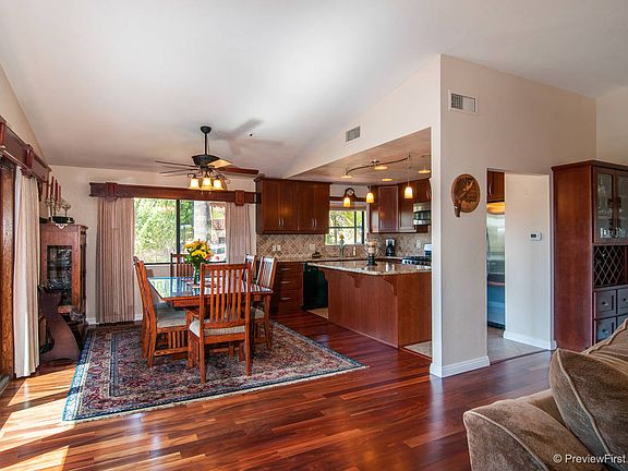 Mt Helix View Home Open Sunday October 12 from 1-4pm Exquisite remodel with a view in the foothills of Mt Helix. Private decks and patios surround this amazing home to give you 180 degree view of the rolling hills and city lights. Many notable upgrades. Custom kitchen with alabaster pendant lighting, gas and convection double oven, granite counters, custom cabinets and stainless appliances. Two wood burning fireplaces, hardwood & travertine flooring and a full security system with fire sprinklers. Bathrooms tastefully updated with travertine, granite, custom cabinets and high-end fixtures. Master bedroom features custom walk-in closet, upgraded wool carpet, designer curtains, wood blinds, deck with private spa and claw foot tub. Additional parking suitable for RV, finished 2 car garage with built in cabinets and 2 exterior storage sheds complete this move-in-ready home.
