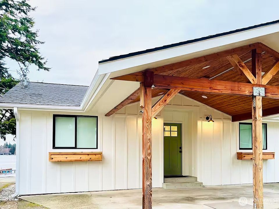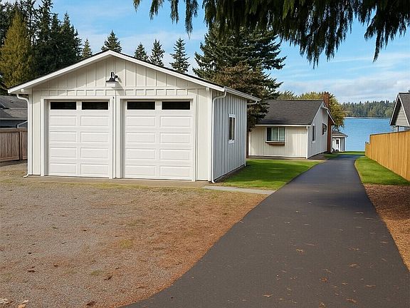A rare chance to own a stunning lakefront home on Lake Goodwin Peninsula. Tucked away on a quiet road with gorgeous sunset views, this property has been fully renovated from the studs out, with every detail thoughtfully appointed. The main-floor primary suite features heated bathroom floors, while the open-concept kitchen and living room showcase expansive windows to take in the lake views. Downstairs offers flexibility as a third large bedroom or second living space. Enjoy low-bank waterfront with a patio designed for outdoor living, plus a spacious shop ideal for storing your boat and lake toys in the off-season. Offered fully furnished, this turn-key home is ready as your private retreat or a proven income-producing Airbnb.
