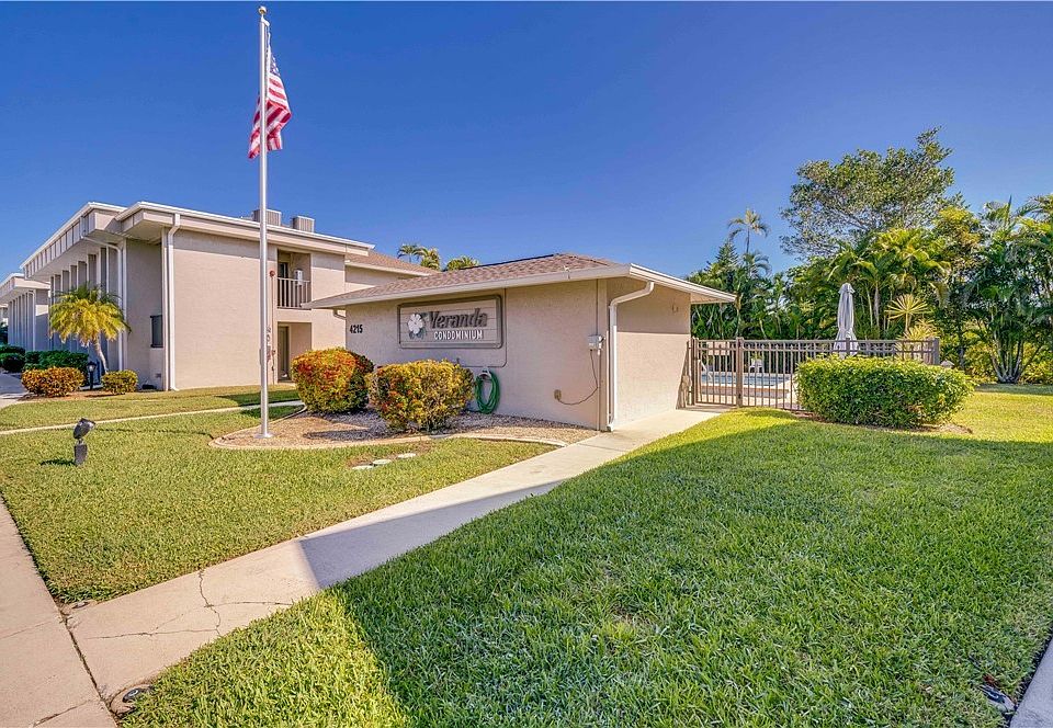 Stunning condo within walking distance to the newly revisioned Jaycee Park where you can enjoy walking your dog, meeting friends and breathtaking sunrise views over the river. This beautiful home is being sold with all its newer light and tasteful furnishings. Close to downtown with all its restaurants, shopping and entertainment options. This 2 bedroom, 2 bath condo features luxury vinyl plank flooring throughout the condo, no carpet anywhere. Private screened lanai with sliders from living room and owner's suite overlook a lush landscape area. The washer and dryer are in the unit. Veranda condo includes a private resident's pool in a tropical setting. A storage unit is located right outside your front door. Small pets are welcome.