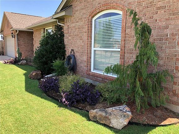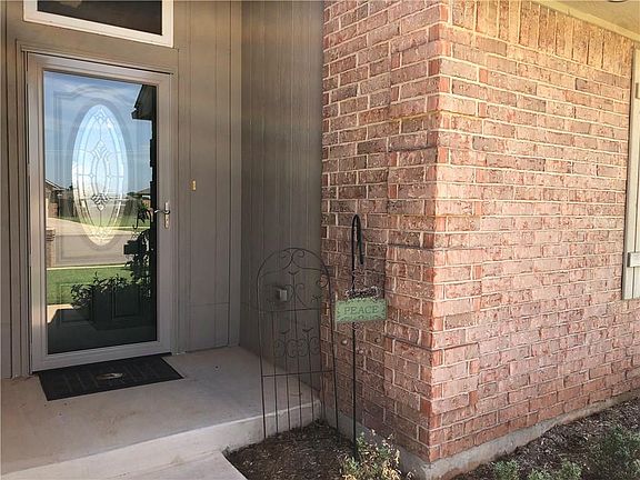 Wonderful Location! This home offers the best of what you are looking for, such as: Close to restaurants, shopping, and close to I-35 access. It is on a quiet Cul-de-sac with a big side yard and a double drive-thru gate with an additional walk thru the gate. The home features beautiful views of the community pond with walking trails. Lots of open entertaining space from kitchen, dining, and living area. The kitchen has granite counter tops with a large breakfast bar. Large windows in living room provide ample natural light and great view of backyard pond. The master bedroom is spacious with large bath and large walk-in closet. The garage has a storm shelter which holds 6-8 adults, built in cabinets for storage. The living area has gas fire place. Brand New Features include New Front Door, New Front Storm Door, Landscaping across entire front of house, New Outside Lighting, New Hanging light in Dining Room and Kitchen. This home is a MUST SEE! Don't miss it, it will go fast.