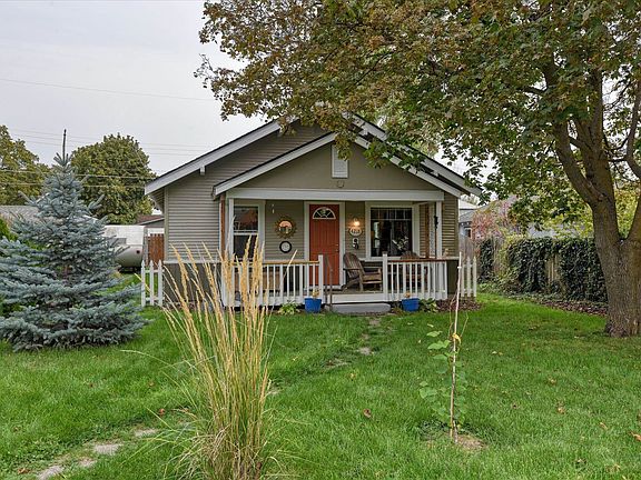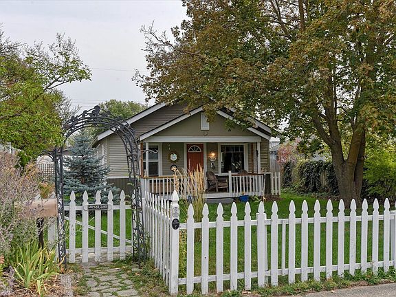 Don't miss this great Garland area bungalow! Centrally located this adorable home features a charming covered front porch to enjoy and just had a new exterior paint job completed on home and garage. Features 2 bedrooms - one with double closets and second with a walk-in closet. Large kitchen eat-in with stainless steel appliances and large pantry. Updated bathroom with walk in shower & vinyl windows throughout. Enjoy the covered back patio with fully fenced front & back yard with beautiful landscaping and raised garden beds. Plus detached 1 car garage with paved alley access. All appliances stay including washer and dryer. This is a must see and will not last at this great price!