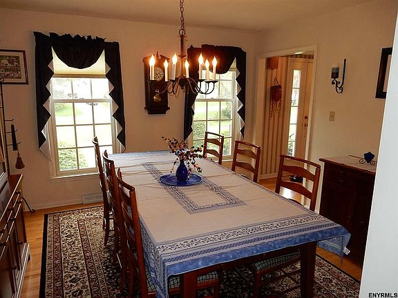 Meticulously maintained one owner home on a cul-de-sac in Guilderland. New furnace, roof, cherry kitchen and garage doors within the last 8 years. Beautiful hardwood floors throughout the house. Wood burning fireplace. 4 bedrooms, 2.5 baths. Private back yard. Pinebush Elementary. Window treatments in family room excluded. This one won't last long!