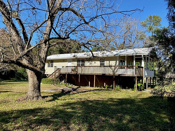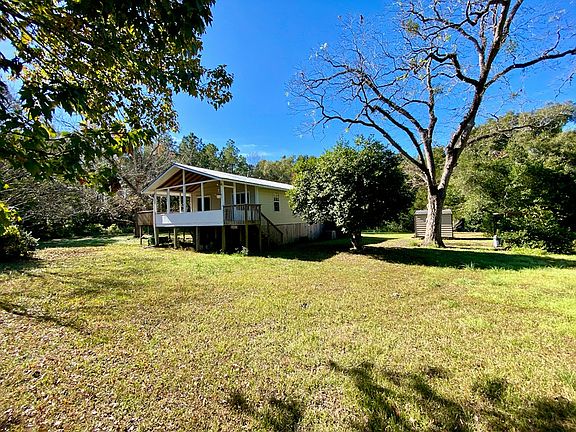 Come see this charming, country home, situated on a full acre of beautiful, grassy land with several mature pecan trees, banana trees, and more! You'll settle in beautifully here -- enjoy your morning coffee on the open covered porch, or cozy up by the woods-side fire pit out back. Walking into the main great room, you'll find vinyl plank flooring throughout, stainless steel kitchen appliances, and a spacious separate dining room. Down the hall, you'll find two bedrooms and a full bathroom. The generously-sized master has plenty of closet space. Another bedroom with an ensuite half bath is located off the dining room, a great setup for a work-from-home office. Protect your cars or cycles by parking underneath the elevated home. Washer and dryer hookups located in detached shed. This delightful home is just a few miles drive from downtown Newberry, and an easy commute to Gainesville for shopping, dining and entertainment. Call today to take a look at this nice, countryside homestead!