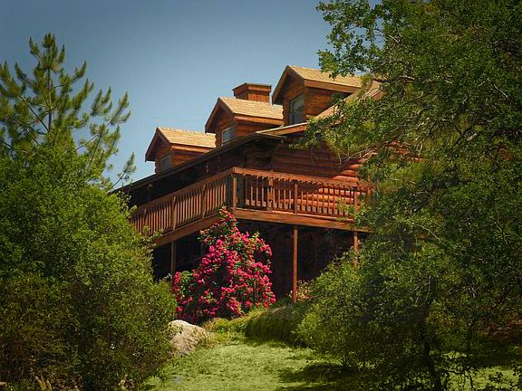 Spectacular log home nestled in a picturesque setting. This one of a kind home has 5 bedrooms, 3 stories, 5 1/2 baths and two living quarters. The main floor is a great living space with darling country kitchen, dining room, living room, large master bedroom ,bath and an office that could be a 6th bedroom. Upstairs is two bedrooms each with their own bathroom. The bottom level of the house is a complete separate living space, perfect for vacation rental or extended family. Two bedrooms, two bathrooms, kitchen, living room and a separate entrance, complete with it's own private deck. Main floor and bottom level have their own laundry and tons of storage. A large deck wraps around the main floor with sitting areas to enjoy the breathtaking views. The grounds are magical with rock waterfalls, sitting areas, fruit trees, green house, a quaint outdoor stone cold storage and outdoor pizza oven.