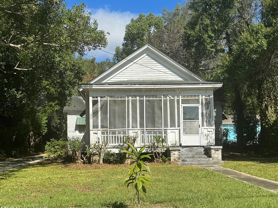 Here is your chance to own a piece of Moss Points rich history.......this historic 1910 residence with 2 bedrooms and 1.5 bathrooms is located in the heart of downtown Moss Point within walking distance to the Audubon Center, Library, City Hall, Burnhams Drug Store and the public fishing pier. While this home requires updating and repairs, the Seller has completed a number of important upgrades including a new total electrical system, all new plumbing throughout, a new on-demand gas hot water system and a beautiful master bathroom with 12 ft tall ceilings. This charming home features original hardwood floors, high ceilings, original front door, large living room with fireplace, formal dining room and very spacious kitchen. Ideal for someone who would like to restore this ''diamond in the rough'' to its original beauty. Moss Point is famous for its beautiful old homes...come be a part of keeping these ''special ladies'' around for generations to come.