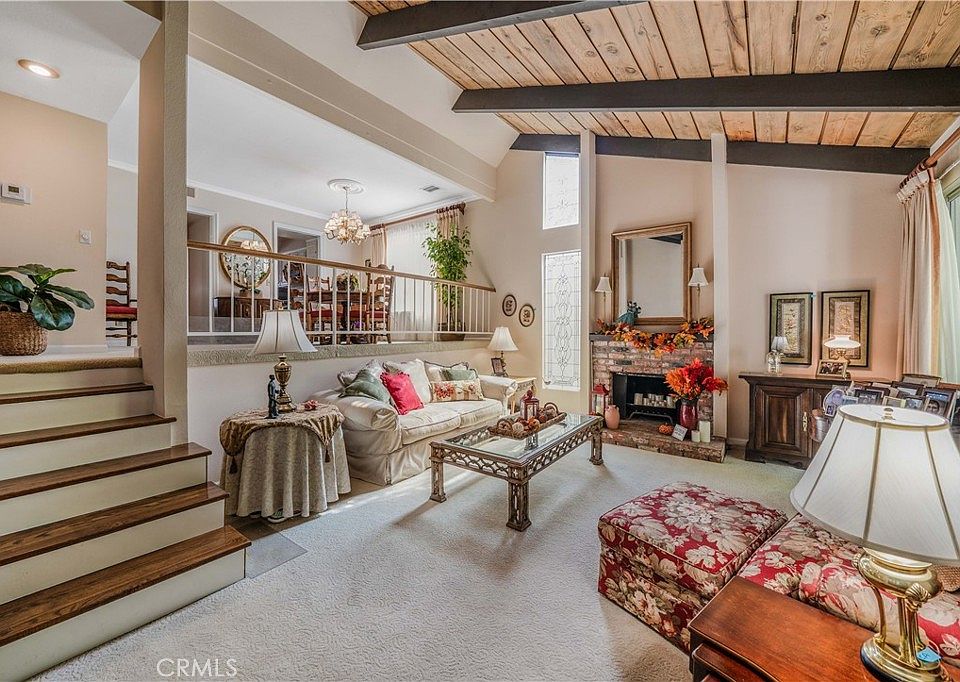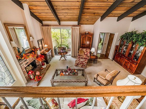 Welcome to this spacious tri-level, light-filled “End Unit” townhome, beautifully located within the highly sought-after Studio Village complex with a large greenbelt pool and spa very near the unit. A gated and walled, private brick garden patio serves as the entrance to a split-level floor plan, opening to a living room with soaring cathedral-beamed ceilings, a floor-to-ceiling south-facing window featuring gorgeous frosted stained-glass insets, a natural brick fireplace and hearth, and sliding doors leading to the private patio for BBQing and entertaining. The large dining area visible from the living room includes a wet bar with storage cabinets and connects to a bright galley kitchen featuring stainless steel appliances, custom tile countertops and backsplash, and a charming breakfast area connected to a family room/den (possible 3rd bedroom) with the addition of a wall, and an adjacent 3/4 guest bath and storage closet. Upstairs, two generously sized en-suite bedrooms feature large, screened picture windows, bathrooms, and walk-in closets. The primary bedroom features a fantastic window seat and an extra-large walk-in closet. A private direct-access two-car garage has two walls of built-in storage cabinets and a laundry area. The HOA includes earthquake insurance, on-site management, security patrol, landscape maintenance, cable TV/internet, water, and access to incredible amenities, including six heated pools, five spas, tennis & pickleball courts, and more. Located in the coveted Carpenter Community Charter School district and near Tujunga Village, Woodbridge Park, Ventura Blvds trendy shops, cafes, and the Sunday Farmers Market, this townhome truly is a rare find in a fantastic community.