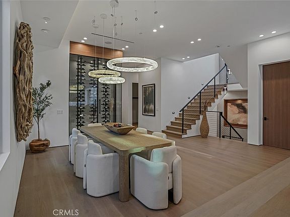 As you arrive, the striking architectural façade sets the tone for what lies inside—sophisticated elegance with a contemporary edge. Step into an expansive open-concept floor plan featuring soaring ceilings, sleek finishes, and an abundance of natural light. The gourmet chef’s kitchen seamlessly flows into spacious living and dining areas, creating the ultimate entertainer’s layout. Floor-to-ceiling glass doors open to a backyard oasis, where a sparkling pool, spa, and outdoor cabana offer the perfect setting for both relaxation and gatherings under the California sun.