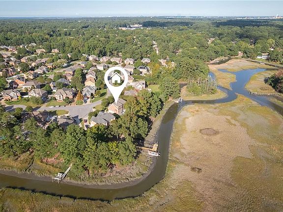 Discover true luxury in Chesapeake w/this exquisite all-brick custom home. Nestled on a 1/2 acre waterfront lot on Drum Creek, the property provides deep water access to the Elizabeth River & the option for a private pier. The interior is a showcase of high-end features, beginning w/a gourmet kitchen boasting custom cabinets & extensive quartz countertops. Elegant oak wood flooring flows thru the formal living & dining rooms. The residence is designed for seamless living w/two sets of stairs. A stunning 2-story family room that is bathed in light from floor-to-ceiling windows & features a coffered ceiling, detailed wood trim, built-in shelving, & a gas fireplace. The primary suite is a private retreat, offering a luxurious bath w/an oversized jetted tub, walk-in tile shower, & dual vanity. Sophisticated study features French doors & built-in wood bookcases. From the formal foyer to the blue stone paths leading to the water, this Homearama estate offers uncompromising style.