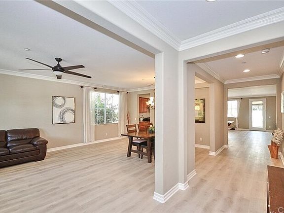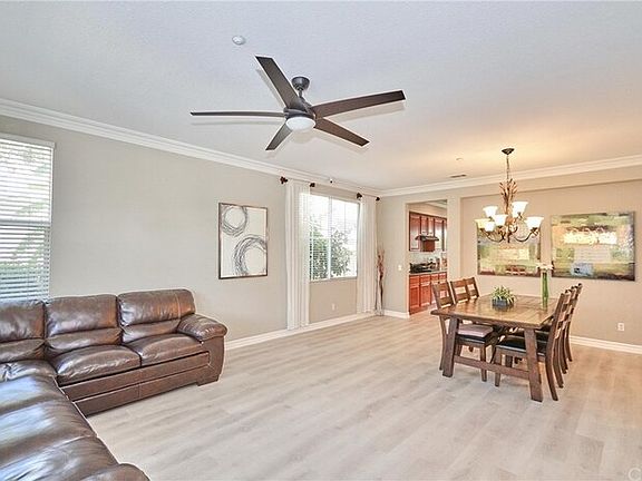 Immaculate SINGLE STORY Situated on Quiet Cul de sac in the sought-after Montecito of RiverWalk Gated Community. Just steps away from a large park, gazebos, basketball court, and children play area. From the exterior, this home exudes sophisticated charm, meticulously manicured with plenty of curb appeal. 2,654 square feet of living space with an attached 3 car garage. 3 bedrooms + office/room (could be 4th bedroom) + 2.5 bathrooms. Impressive high ceilings welcome you to this light & bright open floor plan. The delightful details include Vinyl flooring & Laminate flooring, Ceiling fans, cherry wood cabinetry Kitchen W/ Granite counters, a large center island. Bathrooms W/ Granite tops, Separate Computer/Work Station, Crown Moldings & Base Molding throughout, Custom interior & exterior paint, Large Master Bedrm w/ 2 Separate Walk-In Closets (His & Hers), Plenty of storage throughout. Enjoy the spacious backyard with a large grass area, Aluminum patio cover, and many fruit trees!! Quick access to the 91 & 15 fwys. Close to La Sierra University and The Tyler Mall and the Metrolink. Contact us to schedule a showing.