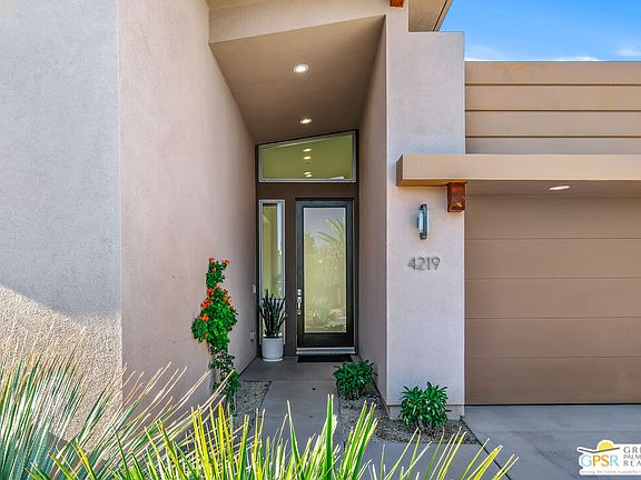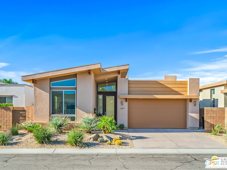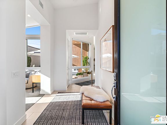 Live the Palm Springs lifestyle at Escena Golf Club, where resort living meets everyday comfort. This like-new, move-in ready Aldea plan has over $25k worth of recent seller improvements that blend the modern design with effortless indoor-outdoor living. Soaring ceilings, clerestory windows, and an open layout fill the home with natural light. The chef's kitchen features quartz counters, custom backsplash, and stainless appliances, flowing seamlessly to the living area with bi-fold doors opening to a private west-facing patio and in-ground spool (spa/pool)perfect for relaxing under the stars. A second covered patio with gas fireplace frames stunning mountain views. The flexible floor plan offers 2 bedrooms + den and 2.5 baths, ideal for guests or a home office. The primary suite includes a California Closet system, dual vanities, soaking tub, and walk-in shower. Energy-efficient upgrades include pre-paid solar, tankless water heater, water softener and filtration, Low-E windows, and custom window treatments. An interior laundry and 2-car garage complete this stylish desert retreat just minutes from downtown Palm Springs.