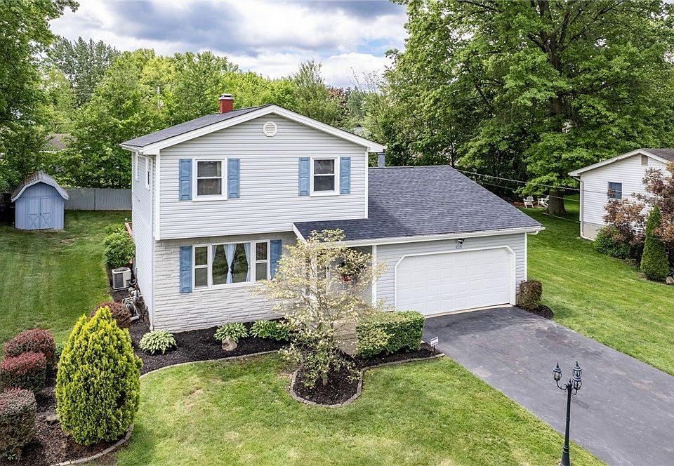 Well Maintained 3 BR, 1-1/2 BA, Colonial in Highland Park. Improvements, Brand New Roof 5-10-24. A/C 2023, HWT 10-21-2022, All New Windows in 2023, except Bay window in Living Room. Sump pump 5-5-24, Furnace was serviced 5-4-24, Full Bathroom with New Shower, New LED Lighting, New Countertop. New Carpet. Interior rooms has been painted. Six doors inside has been replaced. Updated Kitchen with Granite Countertops. Newer Cabinetry, New Microwave 3-12-24, Refrigerator 5-21-20, New Garbage Disposal and also ceramic flooring. Dining Room features a sliding glass door replaced in 6-2023 leading out to a freshly painted huge Deck. Large Yard with Freshly Painted Shed for storage. Family Room with Wood Burning fireplace, Sliding doors replaced also in 6-2023. Easy Access to Both Front & Back entrances. The Finished Basement has been waterproofed and glass block windows. 2 car garage with New garage Floor. Black Mulch in your Landscaping to go with your Black Diamond Color on your New Roof. Conveniently Located where easy access to Shopping, Schools, Parks, Restaurants. Making it the Perfect Place to Call Home! Schedule today!