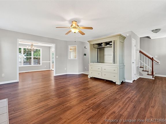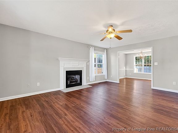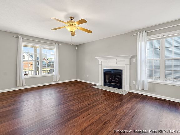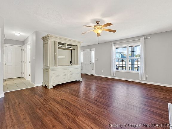 This bright and inviting home has plenty of windows for natural light. The luxury vinyl plank floors and tile run throughout the main living areas making daily living easy and low maintenance. Upstairs, you'll find three bedrooms plus a bonus room with a closet—plenty of space for everyone! Step outside to enjoy the fenced backyard with a patio or relax on the charming covered front porch. The quiet cul-de-sac is great for evening bike rides, and the neighborhood roads are perfect for morning walks. Conveniently located less than 25 minutes from Fort Bragg and only 5 minutes from groceries and shopping, this home blends comfort and convenience—and at a great price, too! Don't miss your chance to make it yours-schedule your showing today!