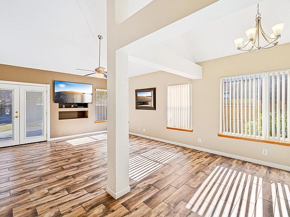 Welcome to your dream home in the desirable Rancho Sereno subdivision! This spacious 3-bedroom, 2-bath gem boasts approximately 1280 sqft of move-in ready elegance. The moment you enter this home you will find beautiful tile floors that lead you through a bright and open floorplan. The home features a remodeled kitchen with stainless steel appliances, solid surface countertops, and tile backsplash that complement the custom cabinetry and elegant hardware. The bathrooms have also been tastefully updated, boasting solid surface countertops, decorative mirrors, tile shower walls and a separate freestanding bathtub in the primary bathroom.