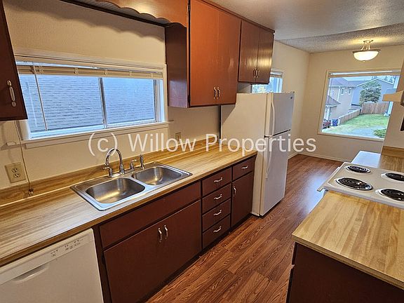 Craftsman style house in Tacoma area. Living room open to dining area. Two bedrooms downstairs with jack and jill bathroom. Upstairs has third bedroom and additional rec room area with lots of built in shelving. Utility room with back door to deck and fully fenced backyard. Shed in backyard for extra storage. Owner pays septic maintenance.