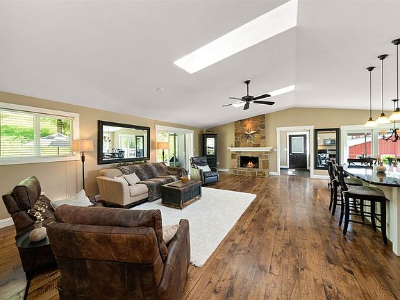 Country Elegance! Bring your horses! This impeccable home is situated on 2.8 gated acres & features a 48X48 fin. shop, three stall barn & pasture! Attn. to detail is evident throughout this completely remodeled home. New custom mill work, hickory hardwood flooring, floor to ceiling rock fireplace & vaulted ceilings! Lovely Kitchen boasts granite counter tops,upgraded stainless appliances, Eating bar & large view windows. Master Suite is large & features Steam shower & custom tile. Stunning views! Close In!