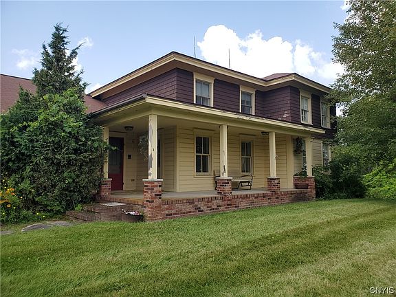 Great rural setting with 4.1 acres and just minutes from Manlius Village, this stately 4 bedroom, 4 bath home enjoyed a major renovation performed in the 1980’s offering a modern floor plan while preserving much of the original details. Features include eat-in kitchen and adjoining 1st floor family room, a 1st floor primary bedroom with private bath and first floor laundry. 2 sliding glass doors lead from the family room and primary bedroom to a 13’x 29’ rear deck. Additionally the home boasts a 13’x 30’ walk-out basement room, central air, 3 masonry fireplaces (1 marble), cherry and pine floors, many built-ins and period looking insulated windows. A detached 30’x 44’ garage offers, in addition to the homes attached 2 car garage, 2 more parking bays bringing the total to 4. This structure even has a walk-up 2nd story room for storage. Square footage includes 684 sq. ft. of finished basement space.