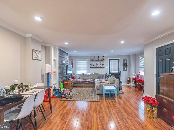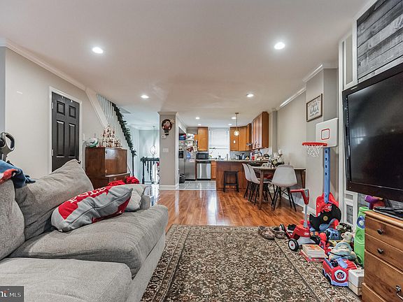 Welcome home to this 3 Bedroom, 2.5 bath Far Northeast End of Rowhome. Entering the front door and into the foyer which leads to main level with open floor plan or downstairs into the basement. Gorgeous newer kitchen has plenty of maple cabinets with stainless steel dishwasher, overhead exhaust and refrigerator, granite counter tops with breakfast bar that overlooks to open dining and living room area. 2nd floor has Master Bedroom with 2 double closets, gorgeous fully tiled master bath with shower stall. Bedrooms 2 & 3 share a large new tiled hall bath with granite top double sinks. Lower level / basement is finished which can be used as another bedroom, home office or additional living space with 1/2 bathroom, laundry area and storage/workshop room.