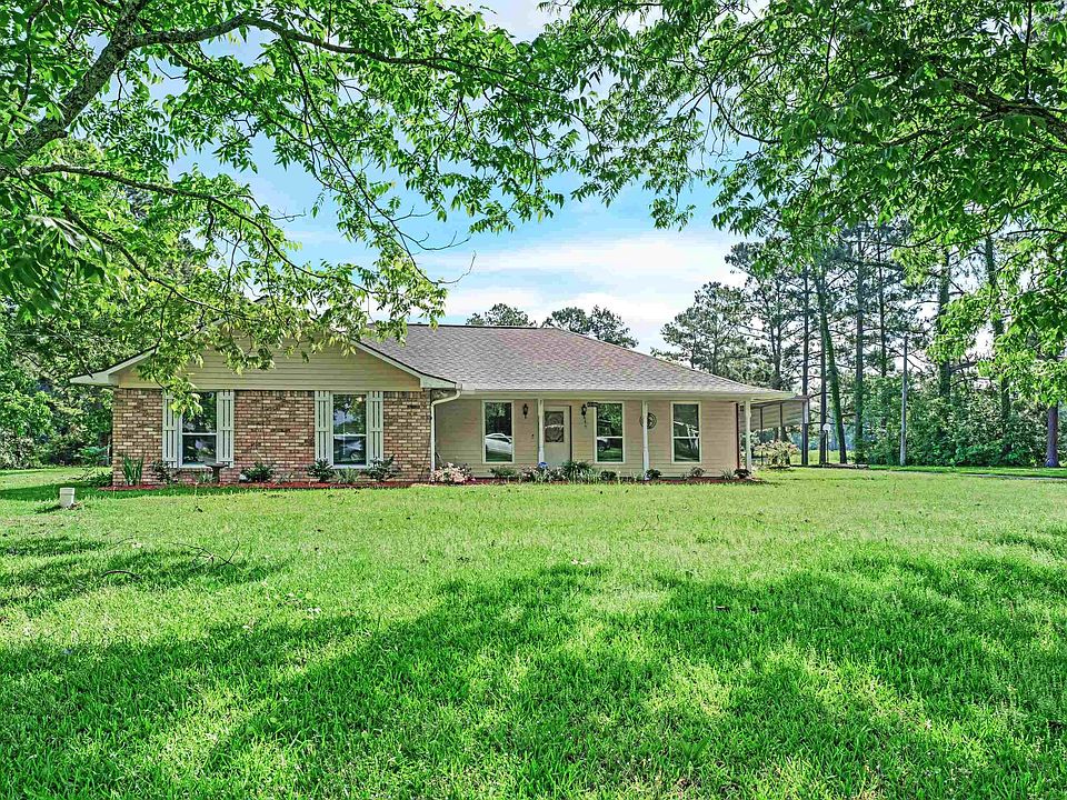 Great 4 bedroom, 2 bath home sitting on 1.62 acres and located on a quiet road. This home has a real wood burning fireplace, separate dining room, and plenty storage and parking. No Carpet! No popcorn ceilings! ALL new windows! New electrical panel. Carport 2 car and main storage shed as well as additional covered parking for 2 cars and covered RV or boat covered parking and 20 x 14 workshop. The roof is only 2.5 years old. The large backyard features plenty of producing pecan trees and backs up to a bayou. Storage main house has half bath. Beautiful rural living! If you want a quiet place with land this one is for you!
