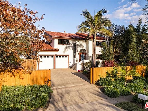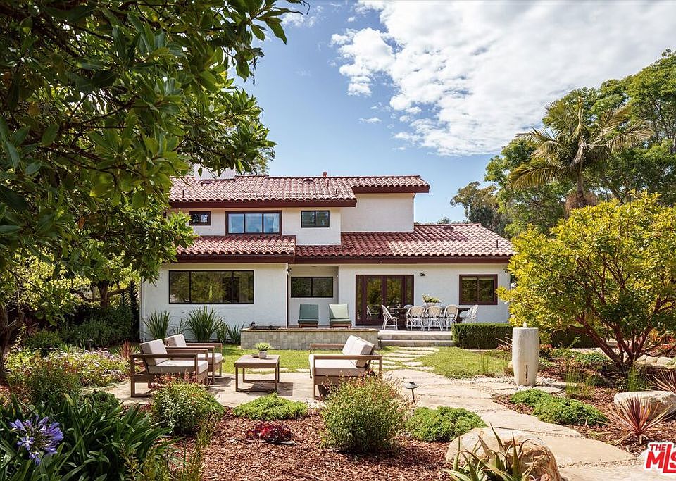 Perfectly located just half a block from Hendry's Beach, the renowned seaside Boathouse restaurant, and the scenic 70-acre Douglas Preserve, this gated and private 3-bedroom, 3-bathroom Spanish-style home is a quintessential Santa Barbara retreat. Set on an expansive .42-acre lot, the property features exceptional landscaping. Tucked behind mature hedging, the backyard unfolds as a lush sanctuary with native plants, fruit trees, winding garden paths, two outdoor dining areas, tranquil water features, a lotus pond, and a gentle creek along the border.Inside, the home blends warmth and sophistication, with hardwood floors throughout and verdant views from nearly every window. Vaulted ceilings create an airy welcome upon entry, leading to a spacious formal living room anchored by a prominent fireplace and mantle. The open kitchen overlooks the backyard and flows seamlessly into the adjoining family room. With abundant storage and prep space, plus direct access to the formal dining room, casual breakfast area, and French doors to the outdoors, the kitchen is ideal for both entertaining and everyday living. A dedicated office with garden views and direct access to the attached two-car garage adds flexibility and functionality.Upstairs, the primary suite offers vaulted ceilings, a fireplace, custom built-in shelving, and a spacious ensuite bathroom. Two additional guest bedrooms are filled with natural light, offering ample storage and views of the garden or mountains.With inviting interiors and exceptional outdoor spaces, this home is perfectly designed for both relaxation and entertaining. Located in Santa Barbara's Coastal Zone and near the best the area has to offer, this is a rare opportunity to own a serene coastal property in one of the city's most desirable neighborhoods.