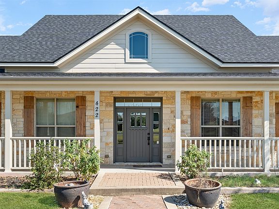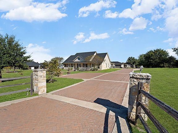Discover refined country elegance in this stunning 3-bedroom, 2.5-bath custom home perfectly situated on 2.5 beautifully manicured acres. A stately brick driveway welcomes you home and a timeless front porch sets the tone for the quality and craftsmanship found throughout. Inside, you’ll find soaring ceilings, abundant natural light, and elegant tile floors that create a warm yet sophisticated ambiance. The open-concept layout is designed for both comfort and entertainment, highlighted by a gourmet kitchen featuring custom cabinetry, expansive countertops, and a layout that seamlessly connects to the dining and living areas. The primary suite offers a luxurious private retreat with a spacious ensuite bathroom and envious walk-in closet for two. Two additional bedrooms, a spacious guest bath, and a conveniently positioned powder room provide comfort and flexibility for family or guests. Step outside to enjoy the peace and privacy of the expansive grounds. A secondary detached garage-shop, plus the 24x36 workshop provides ample space for hobbies, storage, or business needs, while the picturesque pond adds to the tranquil country setting. The large backyard and expansive brick-paved patio are ideal for relaxing evenings or gatherings with friends and family. Located just minutes from Temple’s shopping, dining, and medical centers, this exceptional property offers the perfect blend of luxury, functionality, and country charm all within easy reach of city conveniences. Experience the elegance of 422 Callahan Loop where modern design, acreage, and timeless appeal come together to create the ultimate country estate.