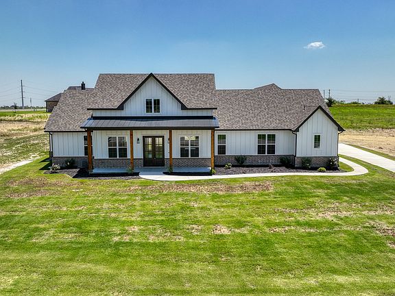 Motivated seller who is also willing to do owner finance. Discover your dream farmhouse nestled in the serene beauty of Calhoun Acres, Azle! This newly built home by MK Homes sits on an expansive one-acre lot, giving you all the space you desire without the hassle of an HOA. Step inside this masterpiece to find an open floor plan bathed in natural light, perfect for entertaining. The gourmet kitchen boasts stainless steel appliances, an oversized island, a large walk-in pantry, and a cozy coffee nook, with a pantry you do not want to miss! Imagine preparing meals while your loved ones gather around the premium stone fireplace in the living room, with its stunning wooden beams and cathedral ceiling. Convenience meets luxury with the three main rooms downstairs, including two spacious bedrooms sharing a Jack and Jill bathroom, each with large walk-in closets, an exquisite primary suite, and a separate office space can be tailored to your needs as a study or baby room or 4th bedroom. The upstairs area offers a versatile second living space – perfect for a game room, bonus room, or an extra bedroom. Practicality is not forgotten – your new home features a mudroom right off the garage and an oversized laundry room with ample storage. Outside, enjoy the peacefulness and freedom of your one-acre lot. Whether you're hosting outdoor gatherings or simply unwinding in your private oasis, this home has it all. Come enjoy as you make many memories on both beautifully crafted porches.