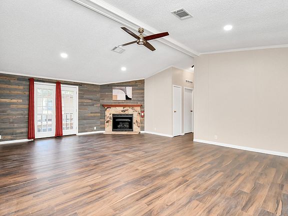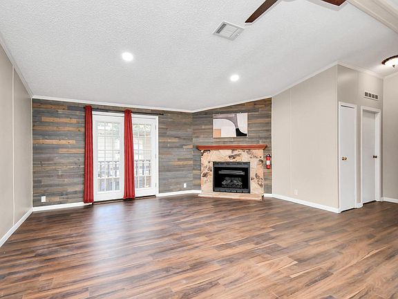 For sale: REMODELED manufactured home featuring 3 BED & 2 BATH, offering 1,920 sq ft of living space on a 14,810 sq ft lot. NEW ROOF installed August 2025. Comes with NEW APPLIANCES, newly installed LED LIGHTING & EXTERIOR SOFFIT LIGHTING surrounding the home, including under the BIG, COVERED PATIO/PORCH to enjoy your evenings with family & friends. With its clean curb appeal & inviting interior, this property is MOVE-IN READY!! Enjoy cozy evenings in the large living room with a fireplace, & a large kitchen with plenty of cabinet space, open to the dining area. The home’s split floor plan ensures privacy for everyone.