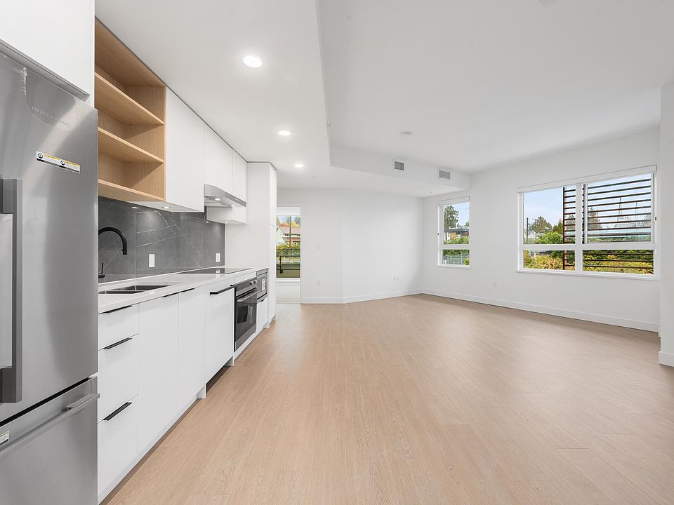 Bright and modernOpen-concept livingFull-size kitchenHigh ceilingsModern interiorsContemporary layoutsQuiet comfort
