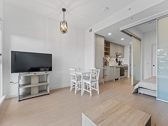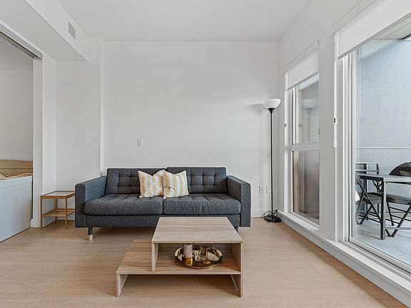 Live in luxury at INNOVA, North Vancouver's newest landmark by Cascadia Green Development. This brand-new 1 bedroom, 1 bathroom home offers 560 sq. ft. of modern living space plus a private balcony with south-facing ocean and city views. The bright open-concept layout features air conditioning, wide-plank flooring, and a sleek kitchen with quartz countertops, custom cabinetry, and integrated high-end appliances. The spacious bedroom includes a walk-in closet, while the spa-inspired bathroom provides a relaxing, modern retreat. One secure underground parking stall is included. Enjoy premium building amenities including a rooftop lounge with panoramic city and ocean views, a party/entertainment room, and a quiet co-working lounge ideal for working from home.