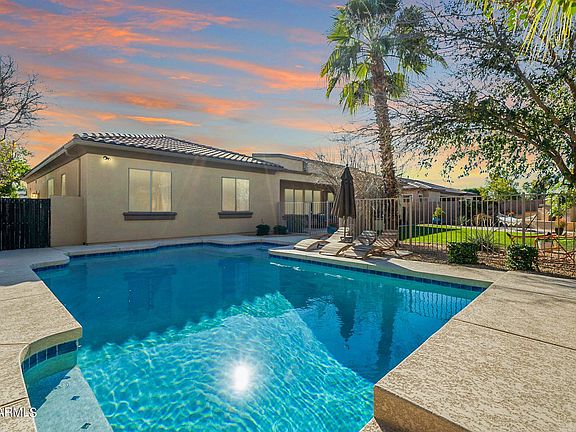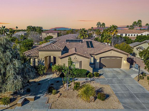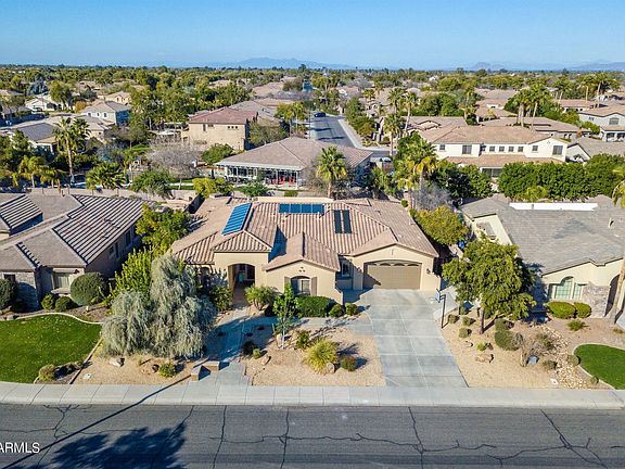FRESHLY painted this past week, this lovely BASEMENT home in the heart of Gilbert could be your next castle if you act fast, as it surely won't last on the market long at all. SOLAR PANELS ARE PAID FOR an average savings of $150 a month. There are 2 large water heaters (1 solar, 1 gas) so you'll never run out of hot water! The family that has lived there will miss so much about it; the kids in the neighborhood loved hanging out in the downstairs basement (with 11 foot ceilings!) which was perfect for the adults to enjoy entertaining up on the main floor. The backyard is simply outstanding and features an incredibly hard to find oversized yard with a fantastic large pool and built-in fireplace. The owners have poles with footers in the ground for lighting that looks amazing at night.