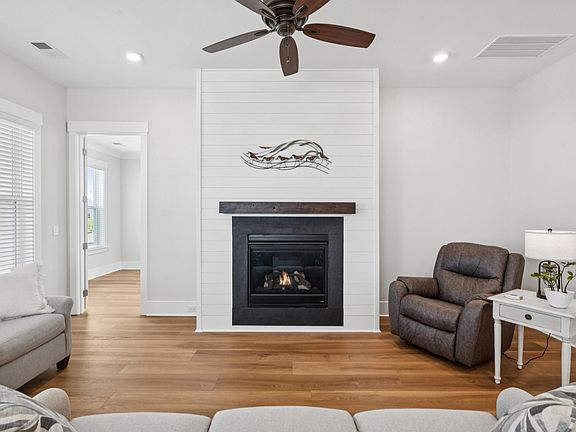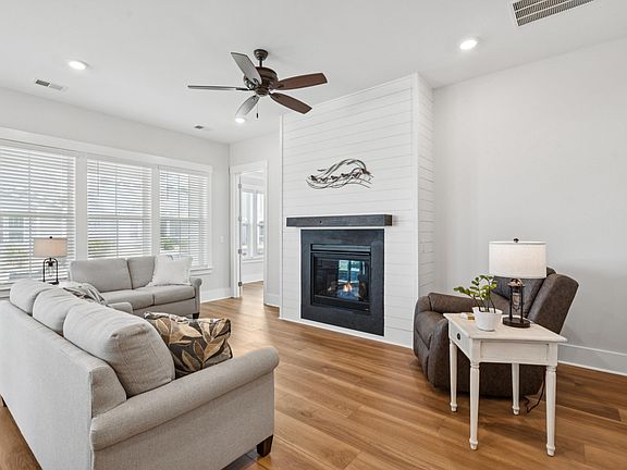 Welcome to Summerwind Crossing, a charming community where 422 Evening Glow Lane stands out as one of the best lots in the neighborhood with an extra approximate 3' on each side of the home. This thoughtfully designed beauty offers comfort, style, and convenience -- all without the wait or stress of new construction.Highlights of the Home Inviting Exterior: Full front porch perfect for relaxing evenings. Welcoming Entry: Foyer with drop zone and coat closet. Flexible Living Spaces: Spacious secondary bedroom and bath opposite the owner's suite for privacy. Large flex room with French doors, perfect for an office, playroom, or third bedroom. Garage Extras: 2-car garage with remote, exterior keypad, utility sink, storage, side door, finished/painted walls, attic pull-down stairs, and special floor coating. Stylish Laundry Room: Beautifully crafted tile flooring, shelving, and large closet. Gourmet Kitchen: Quartz countertops, 42" shaker cabinetry in a rich, soft tan with soft-close drawers, dovetail construction, and trash drawer, gas stove with griddle, tile backsplash, pendant lighting, large walk-in pantry, and generous island overlooking the family room. Family Room: 10' ceilings, fireplace with mantle and shiplap accent. Outdoor Living: Huge screened-in porch for quiet evenings. Owner's Suite: Ensuite bath with dual vanity, tiled shower with bench, private water closet, and frameless glass shower door, and large walk-in closet. Premium Features: "X" flood zone (no flood insurance required), 8' interior doors, 8" baseboards, outlets hidden within trim, tray ceilings, crown moldings, trimmed windows, upgraded LVP throughout (tile in baths, no carpet), high-speed connections, tankless water heater, gutters, window blinds throughout. New Whirlpool side-by-side refrigerator with bottom freezer + high-end washer & dryer (over $5,000 value). Over $75,000 in builder options including extended outdoor living, extra windows, extra-wide bump outs in bedrooms & flex room, additional outdoor lighting, tiled showers, and more. New construction kinks already resolved, move in with confidence. Balance of HOA credit will convey to buyer ($3,510 as of 9/1/25, with $250/month being applied) Selling below original purchase price of $422,203 despite upgrades. $2500 contribution towards closing costs/prepaids/rate buy down with use of preferred lender. Community resort-style amenities: Pool, pavilion with public restrooms, event lawn, dog parks (large and small dogs), pickleball courts. The monthly HOA fee covers not only the amenities but also: home lawn maintenance/weeding/seeding/ mowing/fertilizing/edging/pine straw and community common areas; and Cane Bay Plantation lake access (300 acre lake ideal for kayaking, paddleboarding, fishing and more). Close proximity to top schools, restaurants, shopping, downtown Charleston, and area beaches. This home truly beats the competition, move-in ready, fully upgraded, and priced to sell. Don't miss the chance to call 422 Evening Glow Lane your new home!