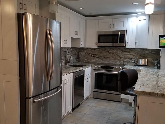 A special place, one of a kind unit. Only to be found here! Fully Decorated model: A Haute Couture Design. Open concept and layout. Designer upgraded Kitchen with high end features. Architectural designs extended dining room and living room. Major Updated guest and full bathroom, Bedroom is a perfect sleeping paradise. Patio with pull downs shutters and light fan . A peaceful view of garden and partial Waterview. Many more features!!