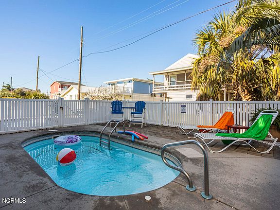 Best offers due by noon on Thursday, 3/24/22... Sweeping ocean views are on display from two large decks and rooms in this refined coastal home, located in walking distance to the Kure Beach pier and many options for shopping, dining and nightlife. Relax in the private pool in the backyard, walk to the beach and the brand new oceanfront park or visit iconic restaurants such as Freddie's, Big Daddy's or Jack Mackerel's—the options are endless. The interior is equally appealing, as it has a seamless, open floor plan and abundant natural light, brought in by French doors and large windows in most of the rooms. Separated from the living room by a breakfast bar with counter seating, the kitchen features granite counters, custom white cabinetry and high-end appliances. Generous secondary bedrooms, large bonus room a second master suite with a jetted tub, and a spacious, ocean view master suite ensure there is something for everyone. Other highlights include two large rear decks that overlook the pool, a laundry room, one car garage and off-street parking. Previously a vacation rental, the home includes fresh interior paint in the main living areas, new carpet in the bedrooms and a proven history of generating significant annual revenue grossing over 80k in 2021. Available fully furnished, with most of the furnishings replaced within the last two years, including the mattresses, and with a pool that has been grandfathered in (pools are no longer allowed with duplexes), this completely turnkey home is a rare opportunity. With many other fun areas to explore that are just a short distance away, including the NC Aquarium, Ft. Fisher historic area and Carolina Beach, the time to act is now. Ask listing agent for prior year(s) income statements and more information.