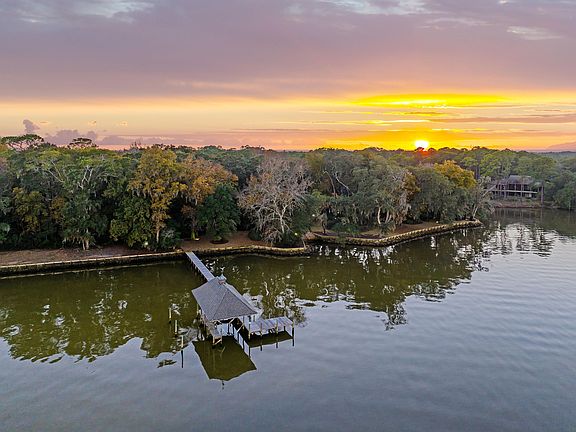 Old English architecture meets contemporary coastal living in this remarkable manor nestled along the shores of Choctawhatchee Bay with more than 30 acres, 640 feet of bay frontage, two docks and multiple dwellings on the property allowing for endless opportunities to design the property to your liking. Positioned beneath an enchanting canopy of century-old oaks, you'll find a four-bed, three-bath primary home, a one-bed, one-bath carriage house over a two-car garage and a boat house. Harkening back to a bygone era, this purchase offers a one-of-a-kind opportunity for discerning buyers with uncompromising quality and plenty of development potential. Designed by North Carolina architect Dennis Lehmann, the main home and carriage home present with gracious Tudor-style architecture featuring sloping gabled roofs, intricate interior details, breathtaking water views throughout and lush landscaping created by landscape architect Don Chism. The main home boasts a Tennessee fieldstone courtyard and patio, a coquina fireplace in the primary living area, antique cypress dining room doors with custom etched glass, Turkish travertine flooring, reclaims cypress millwork and more. Inside the chef's kitchen, you'll find hand-rubbed and distressed Omega cabinets, a cooking hearth, antique copper pendant lighting, Sahara Gold granite counters and an appliance package including double ovens and wine cooler from luxury brands like Sub-Zero, Dacor and Bosch. Dual master suites, a light-filled sunroom, a media room and a dedicated art studio add to the uniqueness of this property. The carriage house overlooks Clay's Bayou and is no less splendid with whitewashed wood walls, vaulted ceilings, a full kitchen, separate living and dining areas and a screened porch. A 200-ft. primary dock with boat house and lift is complemented by an additional 50-ft. dock ideal for launching kayaks and paddleboards. Take the meandering half-mile driveway through the property to discover 17 acres of uplands that present unlimited potential for personal or commercial use or endless development opportunities such as a pool and clubhouse, equestrian facility, additional homes, boat slips and more. From a private family compound to a new bayfront community to a senior living or corporate retreat, this unparalleled waterfront retreat could do it all.